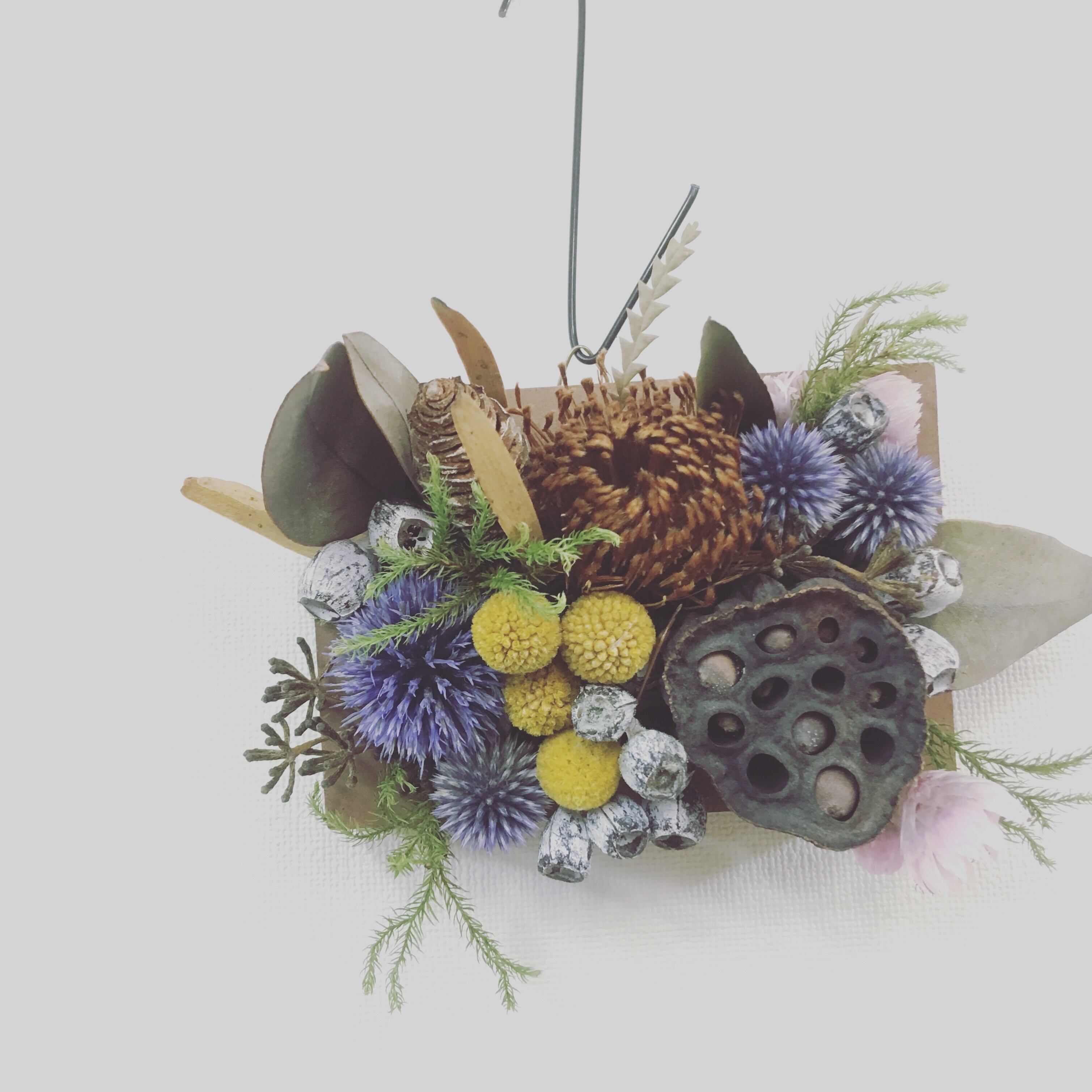 ハスやアザミ、ユーカリの実などを使った手作りのもの。